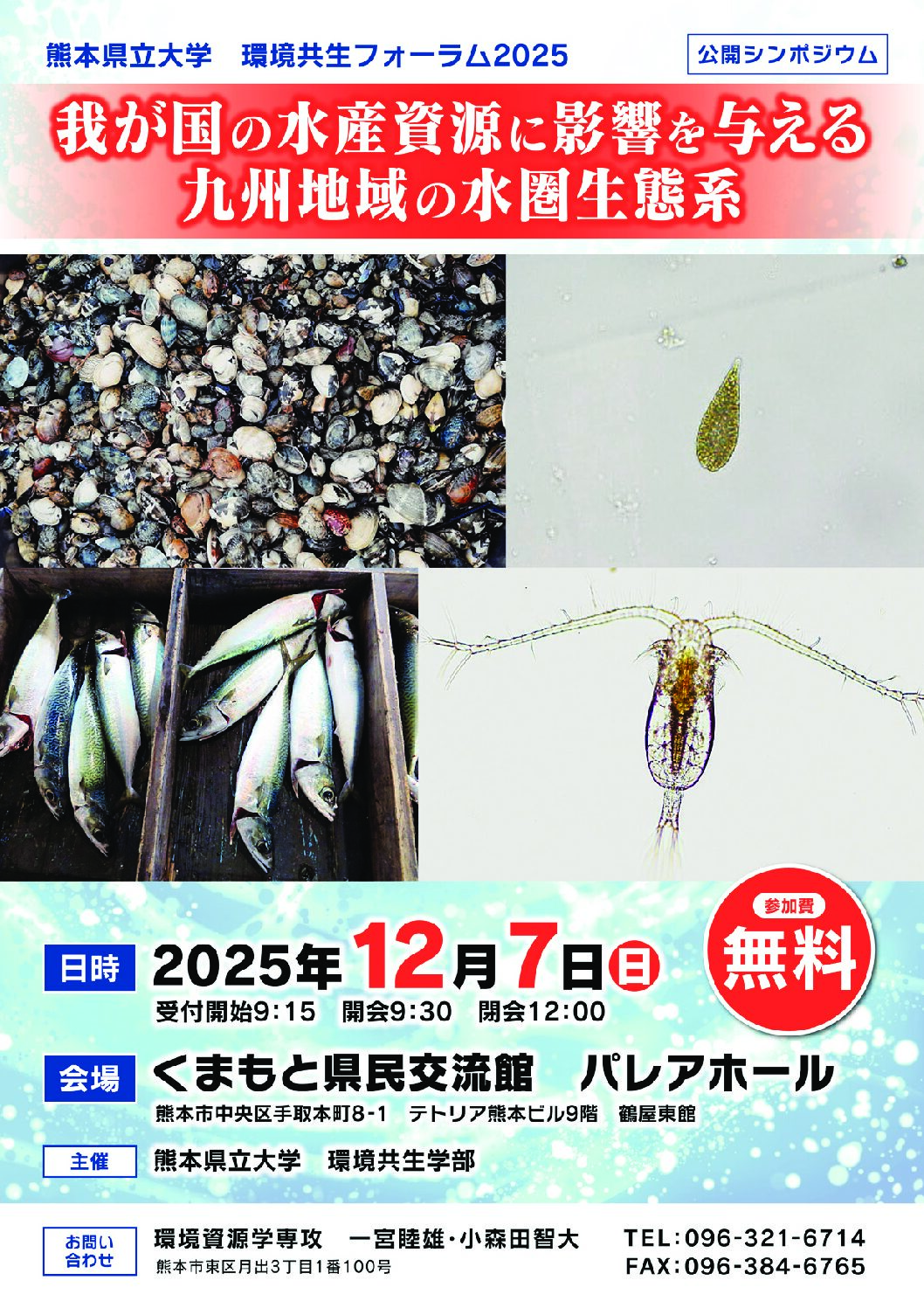 🐠12月7日🐳 熊本県立大学 環境共生フォーラム2025「我が国の水産資源に影響を与える九州地域の水圏生態系」開催のご案内