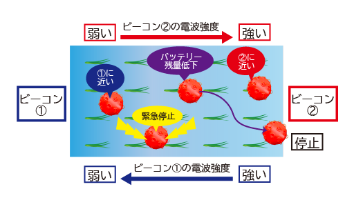図3 ビーコン制御による球体ロボットの走行(イメージ)